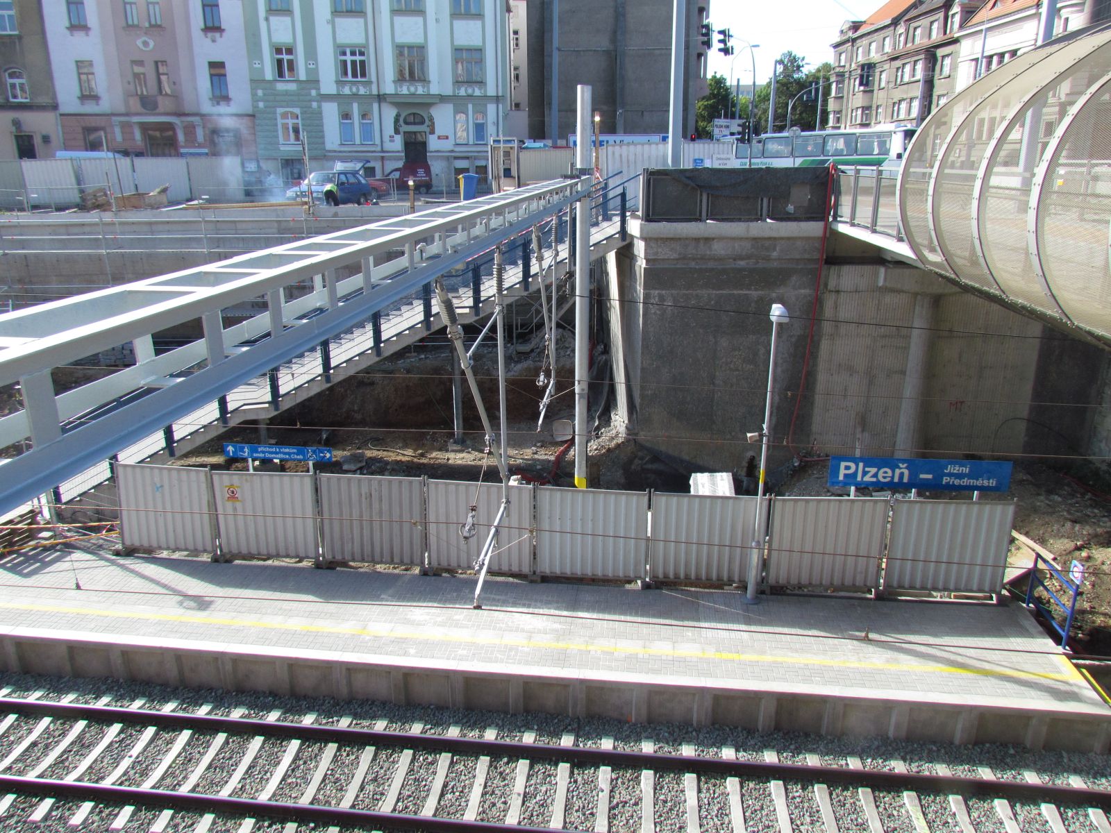 Dne 1.10.1904 byla otevřena železniční stanice Plzeň Říšské předměstí postavená firmou Müller a Kapsa. Tato poměrně unikátně řešená stanice s ostrovním uspořádáním nástupišť i secesní výpravní budovou byla v roce v letech 1920-1921 doplněna o druhou (východní) budovu dle projektu R. Buriana v neorenesančním slohu. Ta měla sloužit pro přijíždějící pasažéry a potřebám železnice ostatně slouží dodnes. I proto se dočkala v letech 1986 až 1989 opravy. Starší (západní) budova přestala svůj účel plnit v roce 1986 a od té doby chátrala. Od roku 2000 byla tato budova využívána pro různé kulturní účely. Avšak až roku 2015 se jí podařilo kompletně zrekonstruovat, tak aby mohla dál pod názvem Plzeň – Moving Station sloužit pro různorodé kulturní aktivity. V roce 2012 prošla rekonstrukcí v rámci modernizace železniční trati i železniční stanice jako taková.