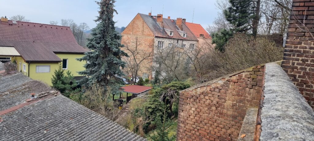 Dnes již prakticky bývalá zahrada na Červeném vrchu patřila do majetku rodiny Klotzů. Pozemky kolem snad bývalého pískovcového lomu patřil pravděpodobně Marii Klotzové rozené Führichové, na kterém její syn Emanuel započal roku 1893 se stavbou vily. Z plánovaných objektů však vznikla v letech 1894 až 1895 pouze zahrada, zahradní domek a dům pro kočího a zahradníka (čp. 439) včetně kolny a stání pro 4 páry koní. Zahrada byla zajímavá jednak například skladbou dřevin, ale i třeba tenisovým kurtem s příslušným zázemím k rekreaci rodiny Klotzů, zavedeným vodovodem či cihlovou zdí po celém obvodu.
