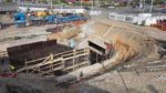 Práce na západním zhlaví směrem k mostům přes Radbuzu