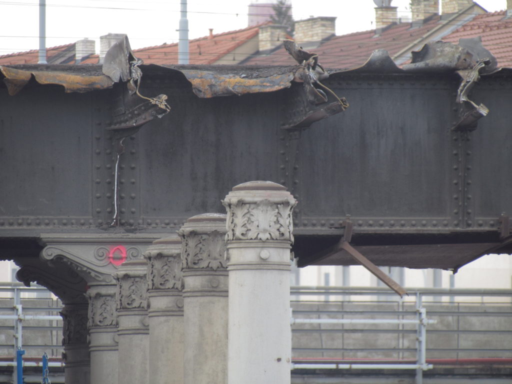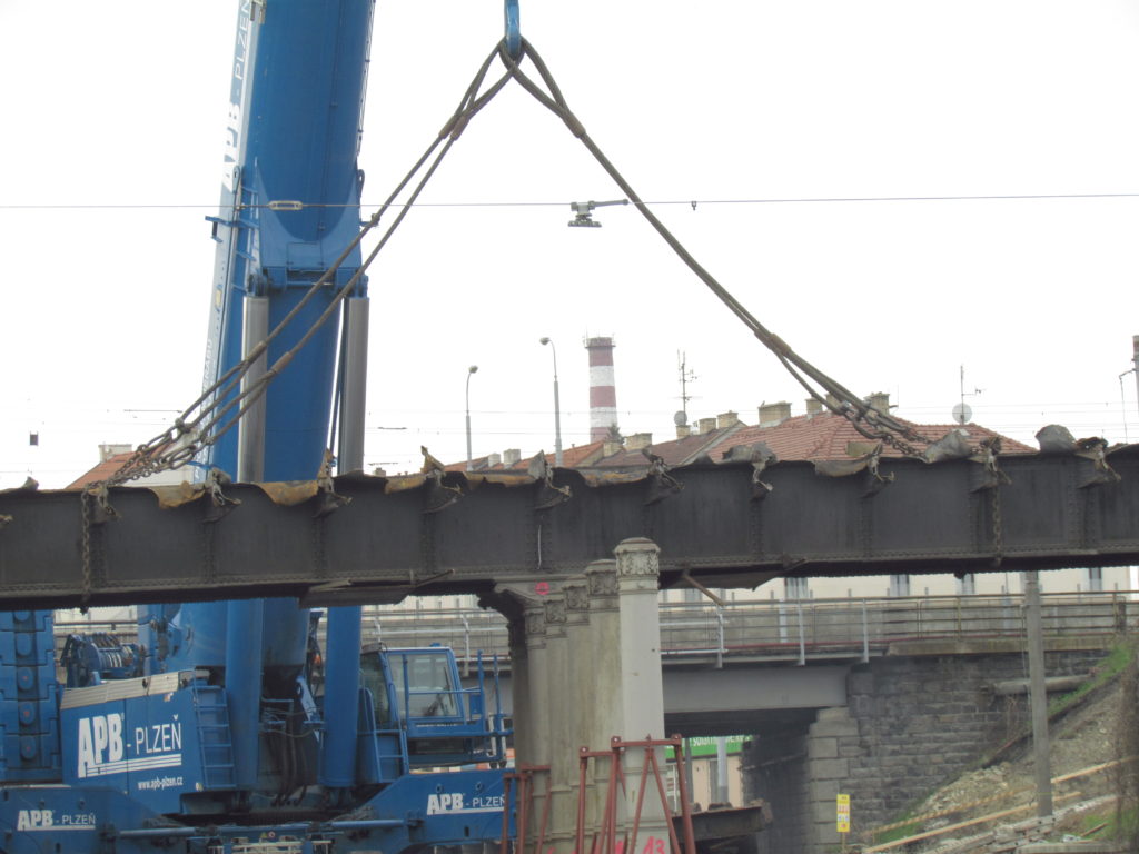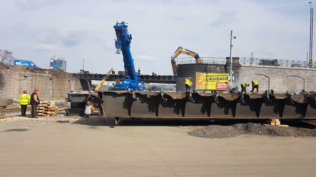 14.4.2017 započala demontáž severního mostu u nádraží. Pomocí bagru s pneumatickými nůžkami je ocelová mostní konstrukce podélně rozdělena na jednotlivé části (první vážila 85 tun, druhá pak 50 t), které k zemi snesl autojeřáb Terex Demag AC 500 společnosti APB. V neděli dopoledne byla na svém místě již jen jedna část, zatímco ostatní byly na zemi postupně rozřezávány a odváženy.