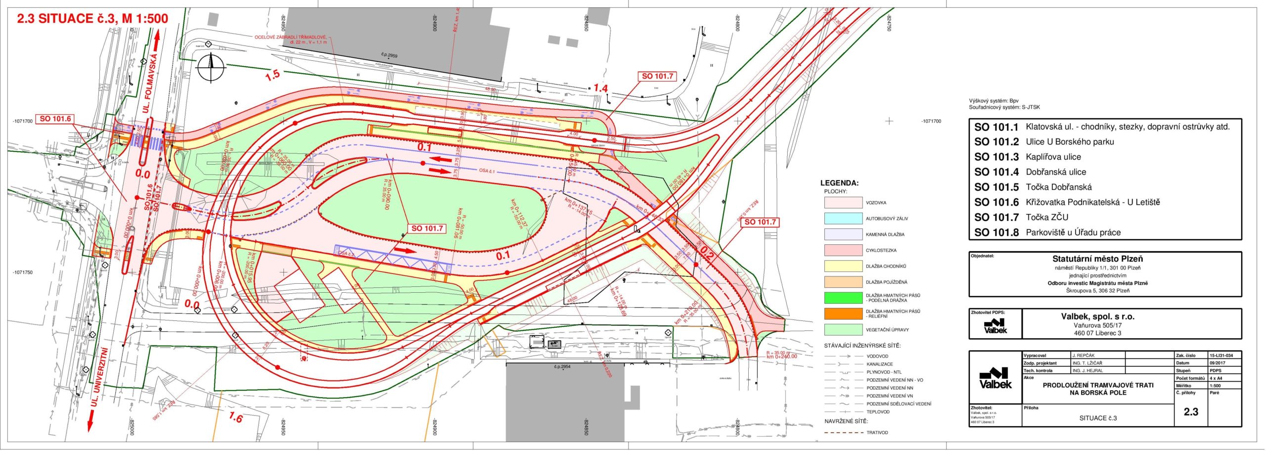 Stávající konečná zastávka Bory bude spolu s obratištěm zrušena a přesunuta na Klatovskou ulici těsně před křižovatku Klatovské a Kaplířovy ulice. I tato křižovatka projde přestavbou tak, aby napojení Kaplířovy ulice na Klatovskou bylo kolmé. Za oběť však padne brána i hradba bývalých kasáren. Detailní podoba stavby je pak patrná z jednotlivých situačních plánů: