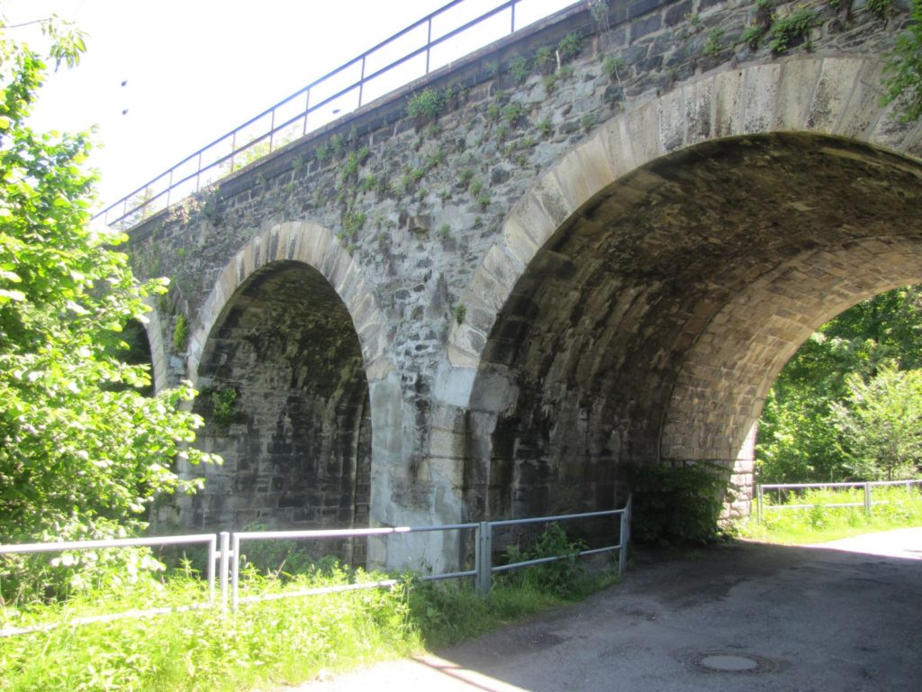 Železniční most na trati Plzeň-Praha v Potoční ulici. Spolu s komunikací podchází trať i Hrádecký potok. V souvislosti s modernizací tratě prošel i tento most kompletní rekonstrukcí.